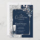 Winter Flowers,Glass Pearls Navy Blue Quinceanera Invitation