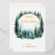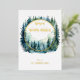 These attractive non-photo holiday cards feature a gold foil circle frame surrounded by a watercolor rendering of a winter pine forest on a simple white background. Elegant gold foil typography says "Warm Winter Wishes" and the signature in gold foil below may be personalised as desired.