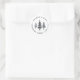 Rustic chic stickers for your outdoor, adventure, or nature-orientated business feature a trio of blue and grey pine trees with two custom text fields in a curved circular design.