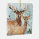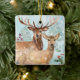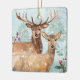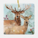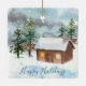 This design features an illustration of winter forest - pine trees, deer and log cabin, covered with snow