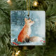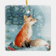 This design features an illustration of winter forest - pine trees, fox and log cabin, covered with snow