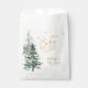 Stylish winter baby shower paper favour bags. Design features a modern calligraphy script font, gold snowflakes and watercolor forest trees. NOT ACTUAL GOLD FOIL