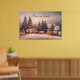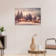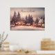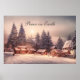 Experience the timeless beauty of a 'Peaceful Winter Village' with our captivating poster. This exquisite artwork transports you to a snow-covered village nestled deep within a serene forest. Towering pine trees, their branches laden with glistening snow, create a protective canopy over the charming wooden houses with their thatched roofs.