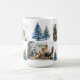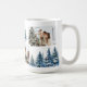 Picturesque photo Christmas coffee mug featuring winter forest with snowy spruce trees. Easily personalise this scenic watercolor Christmas mug with your photos.