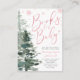 Stylish winter girl baby shower bring a book request card. Design features a modern calligraphy script font, pink snowflakes and watercolor forest trees. NOT PINK FOIL