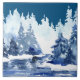Winter Forest Scene ceramic tile. Image of Trees covered in snow next to a river at night.