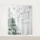 Decorate your baby shower photo booth or party area with this modern baby it's cold outside baby shower backdrop. Design features a modern calligraphy script font, silver snowflakes and watercolor forest trees. NOT SILVER FOIL