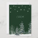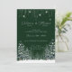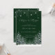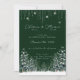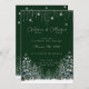 Pretty wedding invitation with beautiful dark green background,has delicate snowflakes, White Winter Trees, Pine Trees and hanging white lights.