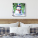 Make your walls festive this holiday season with a Green Winter Forest Snowman Christmas Holiday Canvas Print. Canvas print design features a cute snowman in a charming top hat and scarf standing in a winter forest scene with falling snow. Additional gift and holiday items available with this design as well.