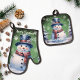 Winter Forest Snowman Christmas | Green Oven Mitt & Pot Holder Set