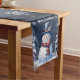 Add a festive and whimsical touch to your home decor this holiday season with a Winter Forest Snowman Christmas Table Runner. Table runner design features a cute snowman in a charming top hat and scarf standing in a winter forest scene with falling snow. Additional holiday home decor available with this design.