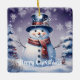 Add a charming touch to your tree this holiday season with a Purple Winter Forest Snowman Christmas Holiday Ceramic Ornament. Ornament design features a cute snowman in a charming top hat and scarf standing in a winter forest scene with falling snow. Additional gift and holiday items available with this design as well.