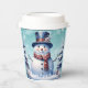 Sip your favourite holiday beverages with a festive set of Purple Winter Forest Snowman Christmas Holiday Paper Cups. Paper cup design features a cute snowman in a charming top hat and scarf standing in a winter forest scene with falling snow. Additional gift and holiday items available with this design as well.