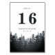 Rustic woodland chic table number cards feature a pine tree border in deep tones of dusty blue and charcoal grey, framing your table number, event date and additional custom text. Design repeats on reverse side. Coordinates with our Winter Forest wedding invitation suite.