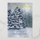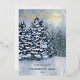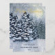 Holiday greeting card printed with a watercolor painting of evergreen pine trees covered with white snow. Perfect way to send your family and friends best wishes for the Christmas season. Good choice for a winter, forest and rustic themes enthusiast.