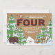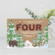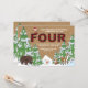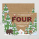 A winter/December-theme invitation with a burlap background and snow-covered trees featuring woodland animals and the holiday elf. The elf can be dragged to any location, made larger or smaller or eliminated. The perfect way to celebrate a winter, fourth birthday! (<a href="https://www.freepik.com/free-vector/winter-animal-set-of-five_1488911.htm">Designed by Freepik</a>). (<a href="https://www.freepik.com/free-vector/christmas-trees-pack_755817.htm">Designed by Freepik</a>). <br/><br/>The card is easy to customise with your wording, font, font colour, paper shape options and choice of six paper types.<br/><br/>Not exactly what you're looking for? All our products can be custom designed to meet your needs at no extra charge.<br/><br/>Simply contact us at heartfelthelper@gmail.com.<br/><br/>Coordinating products available: Just ask us!
