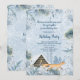 Winter snow scene fox and cabin Christmas party invitation.The front features your personalised party details. The back has a complementary graphic with the RSVP details. You can add other wording there too. A beautiful outdoor watercolor scene with fox, cabin, snowflakes, snow, trees, and evergreen and other tree branches and berries. A very elegant Xmas holiday party invite design. Shades of blue with an icy, ice background.