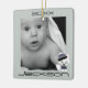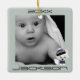This is a lovely ornament, and great that you personalise the back with details of birthday, weight, etc.. My only tiny disappointment is the "My First" doesn't stand out very well on the background. More than happy with the printing of the photo and the writing on the back.
