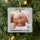 This is a lovely ornament, and great that you personalise the back with details of birthday, weight, etc.. My only tiny disappointment is the "My First" doesn't stand out very well on the background. More than happy with the printing of the photo and the writing on the back.