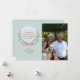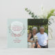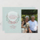A delicate wreath of berries, foliage and flowers tied with a bow against a light sea-foam, snowy background. Pair it with your photo for a one-of-a-kind greeting card.