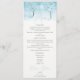 Wedding Menu with watercolor winter refined landscape in blue tones. In the centre are two trees covered with snowy frost haze, the branches of the trees create a thin web against the sky and stretch towards each other in winter charm creating an idyll for many years to come. Winter fresh tender Wedding Menu. Winter Freshness Collection.