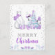 Cute Watercolor Purple and Blue Winter Friends Polar Bear and Penguins christmas design with christmas tree and silver confetti borders