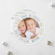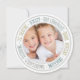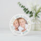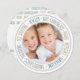 A fun and modern celebration of the winter season is front and centre in this design that incorporates whimsical text in a round border around a photo of your family. A few of your favourite things like hot chocolate, ice skating and wool mittens frame your picture in cool shades of blue, grey and yellow. Punch a hole in the top, add a pretty ribbon and send as an ornament for double the fun.