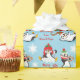 Three adorable little black and white penguins are having winter fun on this cute Christmas wrapping paper. One penguin is making snowballs. Another one is carrying a green and red striped heart shaped candy cane. Another one is sliding on a patch of ice. All of the penguins wear brightly coloured winter stocking caps. A few red or white snowflakes drift down around them. Your custom text is in red, and everything is placed on an icy blue background.