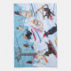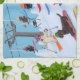 Winter Fun Skiing Labradors Kitchen Towel. Whimsical and funny Skiing Labrador Retriever Painting design. Happy Labrador Retriever dogs enjoy skiing in Labrador Fancy Ski Resort!!! Black Labrador, Chocolate Labrador, Yellow Labrador are all painted in the picture. They really love snow and winter sport. Colourful and cheery. Painted by Naomi Ochiai. Nice dog gifts for Labrador lover's home. Great fun gifts for yourself, too.