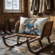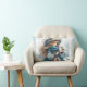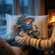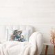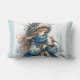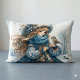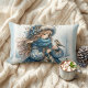 Winter Girl with Bird in Blue Floral Coat Lumbar Cushion