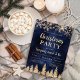 Time to celebrate the holiday season and Christmas with this luxury gold glitter snowflakes sparkles and gold glitter pine tree forest on an elegant festive navy blue watercolor background, featuring a modern cool script font typography, perfect for Christmas corporate business party, employees parties and more!