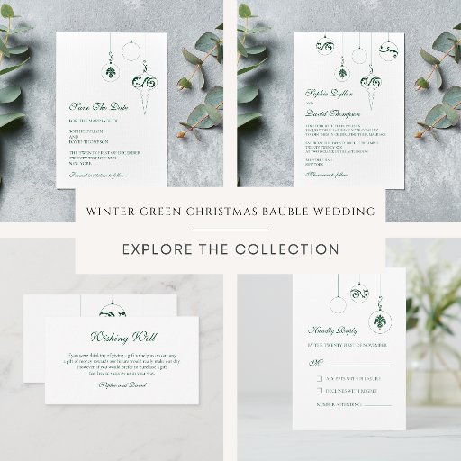 Winter Green Christmas Bauble Ornaments Wedding Invitation