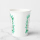 Winter evergreen green foliage watercolor wedding or wedding party paper cups. Part of the watercolor foliage evergreen green fir tree pine needles collection. Personalise with your own greeting, names, and wedding details. Original watercolor art by Sarah Trett for www.mylittleedenweddings.com on zazzle.