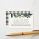 A book request insert card for baby shower. Featuring winter greenery and black and white plaid with poem: "ONE SMALL REQUEST, WE HOPE NOT TOO HARD
