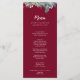 This winter greenery burgundy wedding dinner menu card is perfect for an elegant wedding. The modern fall or winter design has a rustic holiday feel, featuring simple watercolor greenery and dark olive leaves on a rich burgundy background.