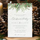 Beautiful Christmas party invitation for the holiday season, featuring hand-painted botanical watercolor illustrations of winter greenery, pine and spruce branches, cones and holly berries.