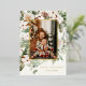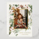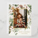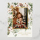 Holiday photo card featuring watercolor winter greenery with a gold accent border. Customise with your family signature and photo. Click "click to customise further" to change the font style, size or colour. Choose between silver, gold and rose gold foil options.