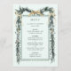 This wedding menu features a watercolor winter greenery garland adorned with pine branches, holly berries, botanical foliage, gold ribbon bows, and simple calligraphy. For more advanced customisation of this design, please click the BLUE DESIGN TOOL BUTTON above! Matching items are also available.