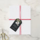 Festive Christmas gift tags feature a rich charcoal off-black background with cascading white flowers, green leaves and botanical foliage. Personalise with your custom holiday greeting (shown with "Merriest Christmas") and your names or family name. Blank on reverse side for hand-writing your gift recipient's name. A modern and elegant Christmas design that's sure to please everyone on your gift list!
