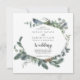 This winter greenery informal wedding invitation is perfect for an elegant wedding. The modern fall or winter design features elegant watercolor greenery and olive eucalyptus leaves with a rustic holiday feel.