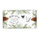 Winter greenery border with ample pine forest foliage with a chicken illustration and a rustic script for all information on a white background.