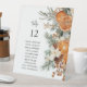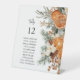 Table sign with table number and guests names, small seating chart table top sign featuring watercolor cinnamon, dry oranges, pine tree.