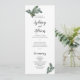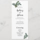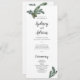 This winter greenery wedding program is perfect for an elegant wedding. The simple fall or winter design features modern watercolor greenery and classy dark olive leaves with a rustic holiday feel.