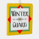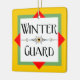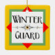 Winter guard with a decorative line sporting a flag in a colourful gold block, is a unique design for indoor colour guard members at birthdays and holidays.