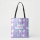 Personalised Cute holiday bag with white snowflakes, purple and blue stripes,, white mittens and winter hats.