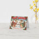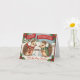 Chilly hedgehogs wish you a merry christmas, cute vintage nostalgia foldet greeting card.