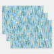 Winter Holiday Blue Green Trees Pattern Gift Wrapping Paper Sheet