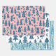 Winter Holiday Blue Trees Patterns Variety Gift Wrapping Paper Sheet