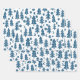 Winter Holiday Blue White Trees Pattern Gift Wrapping Paper Sheet