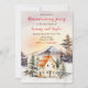 This beautiful and festive watercolor housewarming invitation features a rustic winter cottage surrounded by snow, mountains and trees. There are adorable animals, such as a fox and a wolf, and also mushrooms, acorns and foliage. The text combines handwritten script and sans serif fonts for a stylish and modern look. This is perfect for a winter or Christmas housewarming party.